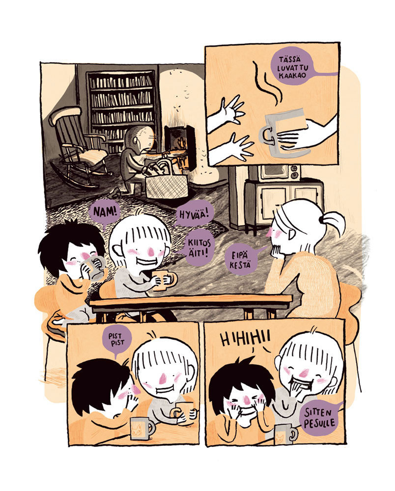 A graphic novel about mothers and daughters, stars and myths. Oksi explores the relationships between mothers and daughters through the Finnish myth of bear aetiology.